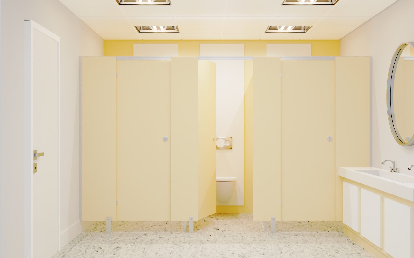Made-to-measure panelsare are not just tailored for aesthetics but are ingeniously designed to conceal all pipework behind the toilet cubicles,providing a clean and polished finish.