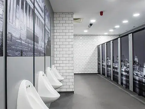 Our new digital print option allows customers to enhance their washrooms and toilet cubicles with corporate imagery or logos. Additionally we offer a selection of pre-made imagery which suits a number of businesses such as gyms, restaurants, night clubs and more.